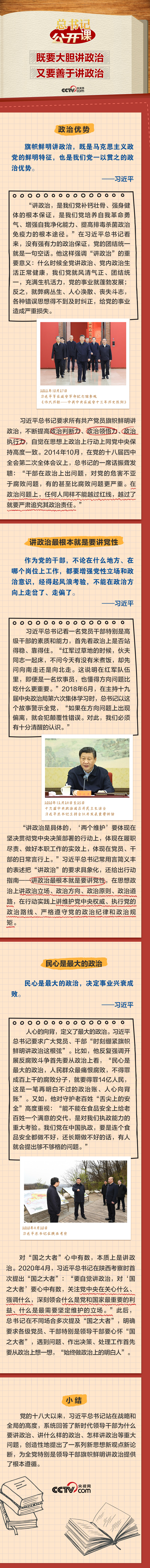 “我们党作为马克思主义政党,讲政治是突出的特点和优势。没有强有力的政治保证,党的团结统一就是一句空话。”旗帜鲜明讲政治,是习近平总书记反复强调的一个重大问题。这一期《总书记“公开课”》聚焦“讲政治”这门“必修课”,让我们一起学习。