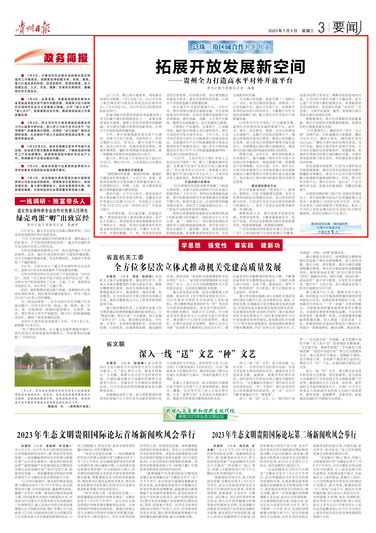 山门大开,黔山秀水迎贵客。两场盛会即将拉开帷幕:7月6日至7日,2023年泛珠三角区域合作行政首长联席会议在贵阳举办;7月8日至9日,2023年生态文明贵阳国际论坛举行。