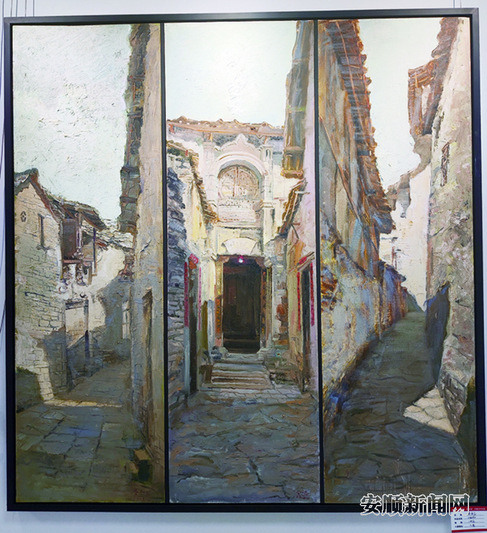 相较于传统的画展,这次美术作品展呈现了丰富的作品面貌,寻找到艺术更多的嬗变。一等奖获得者李刚惠芸创作的《屯庙凯旋祈福》材质为高温颜色釉,是一件综合材料类作品。吴传双表示,这样的创作样式在安顺的艺术展览中尚属首次,作品构思新颖,故事性强,制作工艺复杂。除画功以外,还要掌握陶瓷的烧制工艺,方可完成一件作品。该作品用色丰富,搭配有佳,画面表现恰到好处,主题取材于屯堡家园故事,用画面记录了一个屯堡祈福的家园故事,该作品除艺术价值外,还有一定的史料价值。他认为,安顺风物和屯堡文化是我们祖先留下的精神财富,生活在这块土地上的画家,有责任和情怀为这片土地上的山山水水和风土人情付诸行动,用他们的画笔把乡愁留住,用他们独特的视角,记录屯堡、宣传安顺。