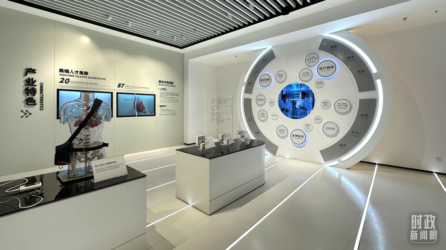 △园区展示中心的生物医药产业创新展示。(总台央视记者覃思拍摄)