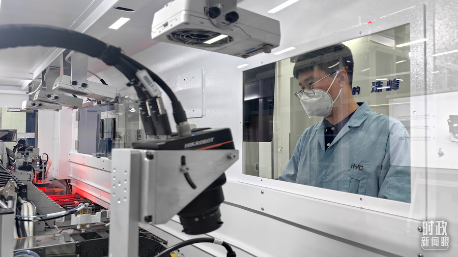 △企业员工正在研发车间内进行蓝牙耳机电池管理芯片的测试。(总台央广记者潘毅拍摄)