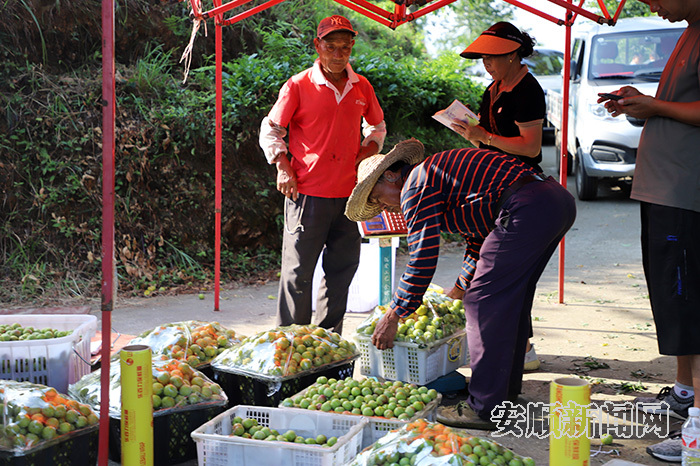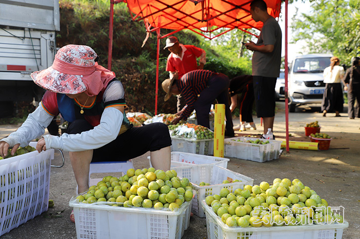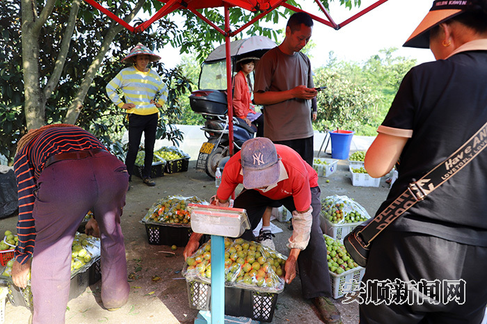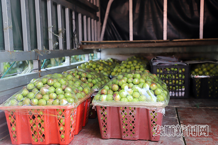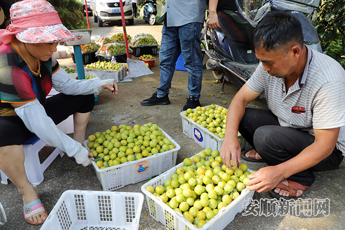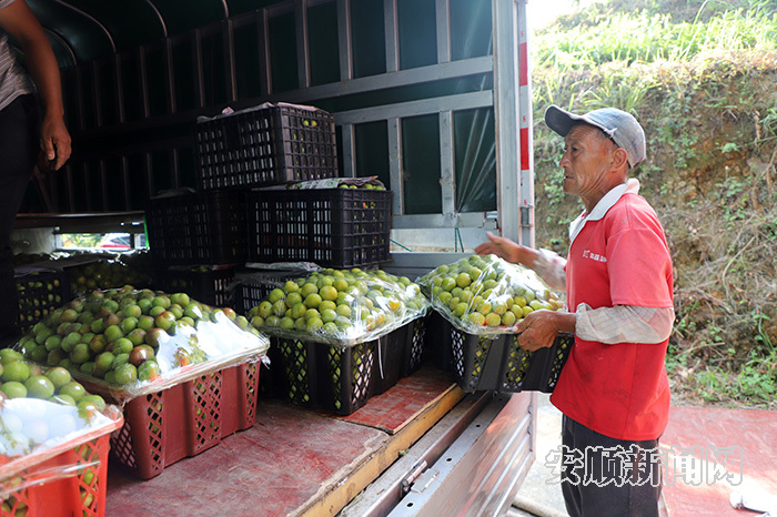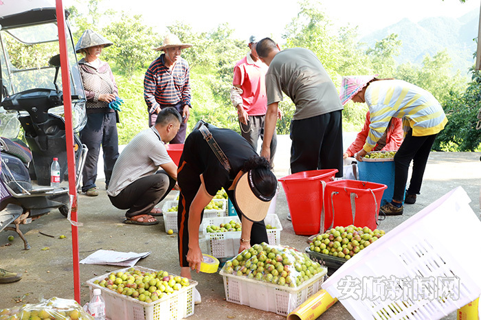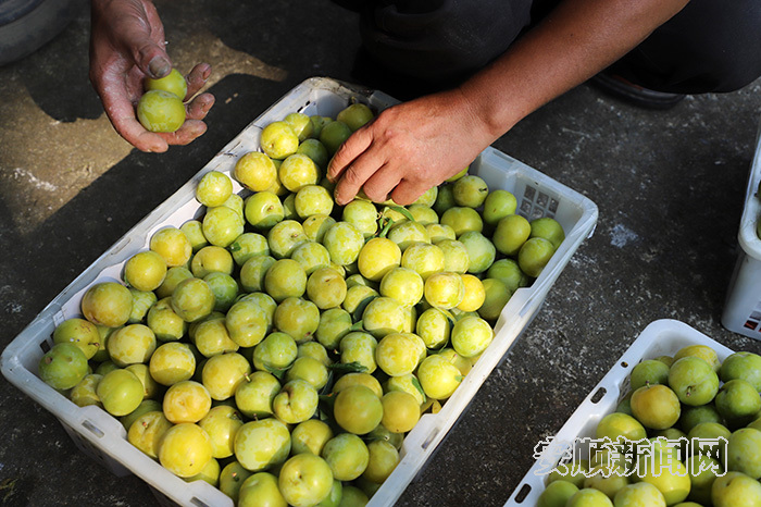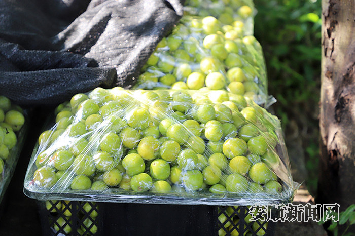 近日,记者来到普定县黔龙茶种植基地,看到套种于茶树中的四月李、“半边红”等李子喜获丰收,农户们正在抓紧时间采摘、分拣、打包、称重、搬运,现场一派繁忙丰收的景象。安顺日报融媒体中心记者 李超然