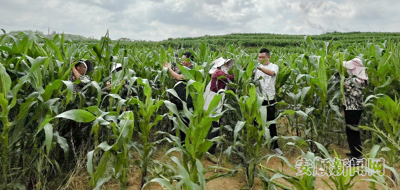 7月12日,在普定县化处镇化新村玉米制种基地,来自市种子站团队的农技专家正在手把手指导农户为制种玉米去雄去杂,为提升种子质量和产量保驾护航,基地里300亩制种玉米郁郁葱葱,长势喜人。