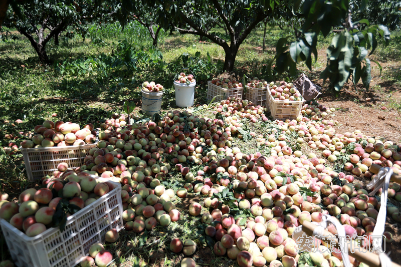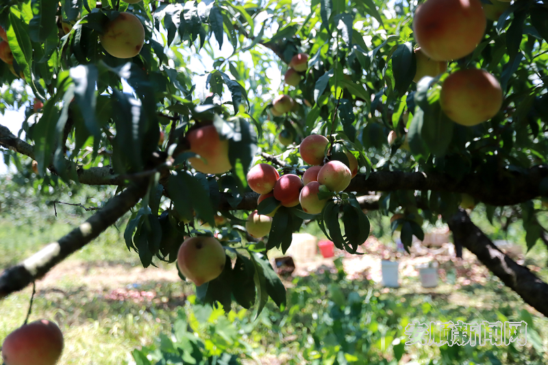 7月20日,记者在桃源村艳红桃种植基地看到,艳红桃红艳艳高挂枝头,鲜红诱人,吸引不少客商前来收购。