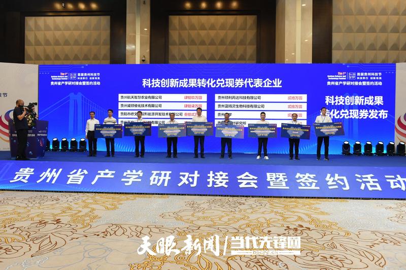 发放一批科技创新成果转化兑现券。向航天智慧农业有限公司、威顿催化技术有限公司、皖黔能源开发技术有限公司、亮欢寨生物科技有限公司、贵州大学、贵州省茶叶研究所、蓝精灵生物科技有限公司、硕利芮达科技有限公司8家省内科技成果转化单位,发放科技创新成果转化兑现券230多万元,助推科技成果转化落地。