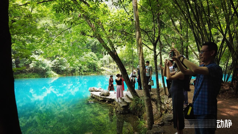 负责景区运营的金鑫旅游服务有限公司董事长黎德盟告诉记者,大小七孔景区集中在两条狭长幽谷中,道路最窄处不到4米,很容易堵车。在过去,游客旺季等车排队平均要20分钟以上。