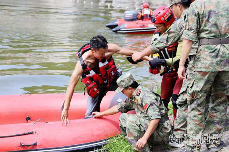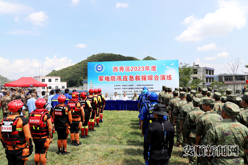 为扎实做好防汛救灾工作,提高军地联合应急处置能力和民兵应急救援队伍实战水平,近日,安顺军分区联合西秀区人民政府开展2023年军地联合防汛抢险应急救援综合演练。西秀区应急管理局、水务局、卫生健康局、消防救援大队、蓝天救援队、七眼桥镇政府相关人员和安顺市民兵应急营200余人参加,出动橡皮艇、救生抛投器、救生设备等大量防汛应急装备。