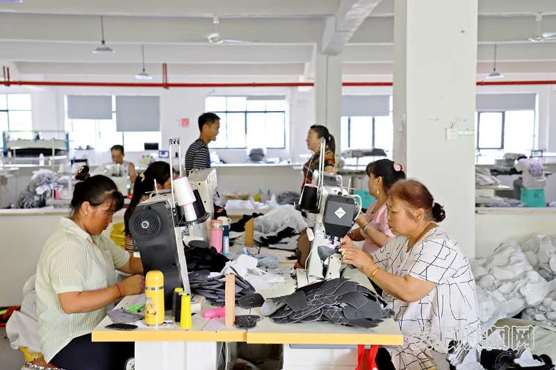 当地群众在各自岗位上操作设备,加紧订单生产进度。