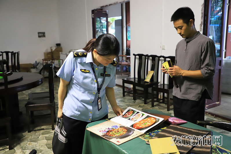 检查中,工作人员先后实地检查了黄果树旅游区瀑韵天城的餐馆、酒店等经营主体,以及大瀑布景区外围的餐馆、夜郎洞景区餐厅,重点检查是否存在无照经营、从业人员是否持有有效健康证上岗、食品加工经营场所是否符合相关规定、食品经营者是否落实进货查验和索证索票及食品留样等制度、是否存在超范围经营、是否滥用食品添加剂及违法添加非食用物质、是否存在经营假冒伪劣食品等不符合食品安全标准等违法违规行为;深入黄果树大瀑布景区检查景区特种设备安全运行情况;同步开展作弊计量器具、价格违法等各方面检查。