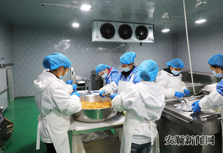 在位于关岭自治县顶云街道食药大健康产业园区的贵州犇竔焱食品有限责任公司,记者看见工人们戴着口罩和手套,正火热地赶制订单。
