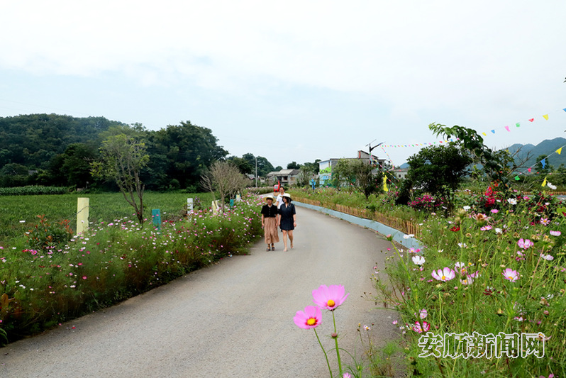 安顺市级特色田园乡村石头寨相间小道两旁,开满了格桑花。