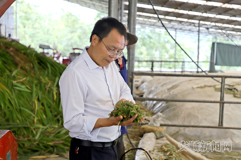 “在青贮过程中,新鲜牧草含水量高,一不注意进空气就容易造成霉变,所以你们在青贮皇竹草的时候一定要注意控制水分,严格做到厌氧发酵,压实压紧密封好,这样储藏的时间也会更长。”得知最近锡厂村关岭牛养殖场正在加工青贮饲草,雷会义当即前往进行实地指导,提示青贮过程中需注意的要点。