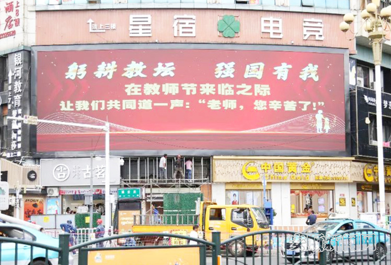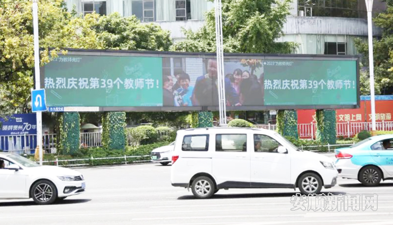 在各党政机关、街道路口、大中小学校等地,利用地标建筑、高杆广告牌、电子显示屏,滚动显示“躬耕教坛、强国有我”“人民教师、无上光荣”“老师,您辛苦了”等字样的祝福语,为广大教师送上了节日的祝福,进一步营造尊师重教的良好氛围。(安顺日报融媒体中心记者 胡典)