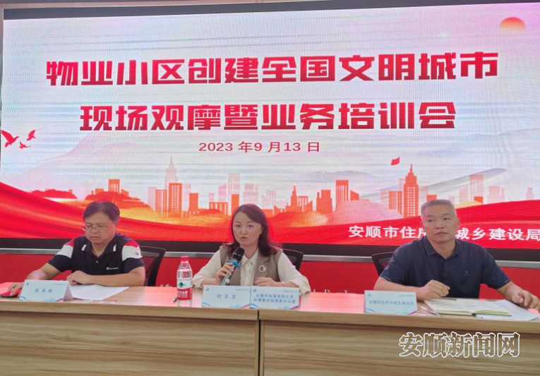 在随后的业务培训会上,西秀区、平坝区、经开区就辖区内物业小区创建工作开展情况进行汇报;物业企业代表开展交流发言;市住房城乡建设局针对物业小区创建标准及相关要求对参会人员进行培训。