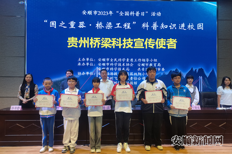 活动中,贵州省坝陵河桥梁科技馆馆长赵雄宣读贵州桥梁科普宣传使者名单并颁发证书,两名优秀的少先队员进行了弘扬科学家精神的激情演讲,讲述了《稻花香里说丰年》和《致敬航天精神·筑梦星辰大海》,随后,中航贵州飞机有限责任公司讲师为同学们讲授航空科普知识,讲座风趣幽默、启发性强,现场爆发了阵阵热烈的掌声和欢笑声。