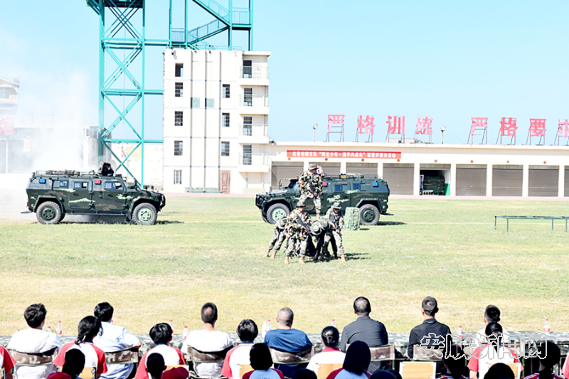 “前方发现敌情,准备战斗!”模拟战场上,官兵犹如弩箭般迅速到达作战位置,通过队形变换、交替掩护等战术动作搜索前进,迅速歼灭敌人。逼真的战场、精彩的演练,让青少年们领略了军人英姿飒爽的精神风貌。