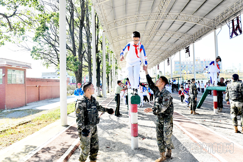 活动中,青少年们走进军营宿舍,分组体验叠军被、打背包,零距离触摸轻武器反恐特战装备,观摩了擒拿格斗、战术攀爬、战术队形等多项科目演练,实打实体验了400米军事障碍。