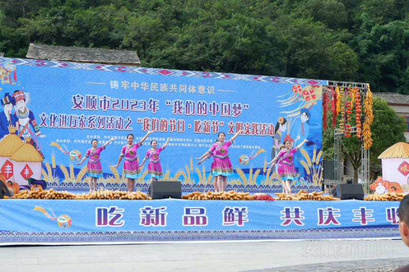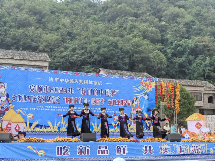 9月25日,安顺市2023年“我们的中国梦”——文化进万家系列活动之“我们的节日·吃新节”文明实践活动在镇宁自治县丁旗街道马鞍山社区举行。