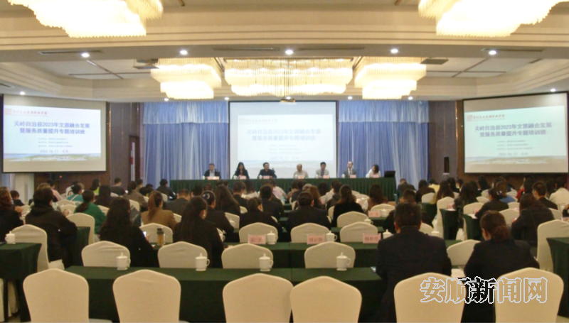 10月17日,关岭自治县2023年文旅融合发展暨服务质量提升专题培训班开班,该县各乡镇(街道)、县直有关部门(单位)负责人和A级旅游景区有关负责人,等级民宿(客栈)、酒店(宾馆)、农家乐经营户代表共120人参加培训。