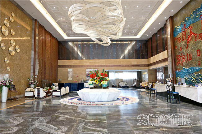 时值深秋,步入位于关岭自治县顶云新城的天书酒店,一眼便能看见以红崖天书为原型的背景墙,别致且独特。在大气敞亮的大堂里,顾客或在舒适安逸的休息区中喝茶闲憩,或在酒店前台办理入住手续,有序且自在。