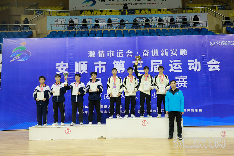 青少年甲组(男子团体)颁奖仪式:第一名普定县代表队,第二名市直代表队。