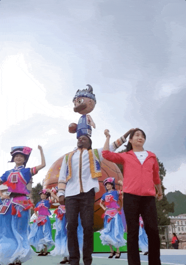 多才多艺的她,还经常与村民一起载歌载舞↓