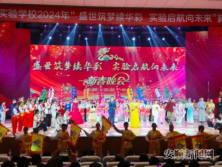1月20日,安顺市实验学校2024年新春晚会在市文化中心举行。晚会以“盛世筑梦续华彩 实验启航向未来”为主题,并以线下演出和线上直播展演的方式同步进行。