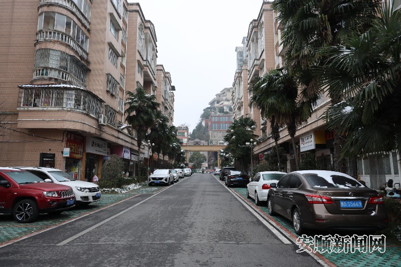 2023年12月24日,车行至安顺经开区检察院宿舍,车辆通过智能化停车系统进入小区,小区内道路干净整洁,楼面崭新温馨,车辆摆放整齐,不时居民拎着采购年货回家。