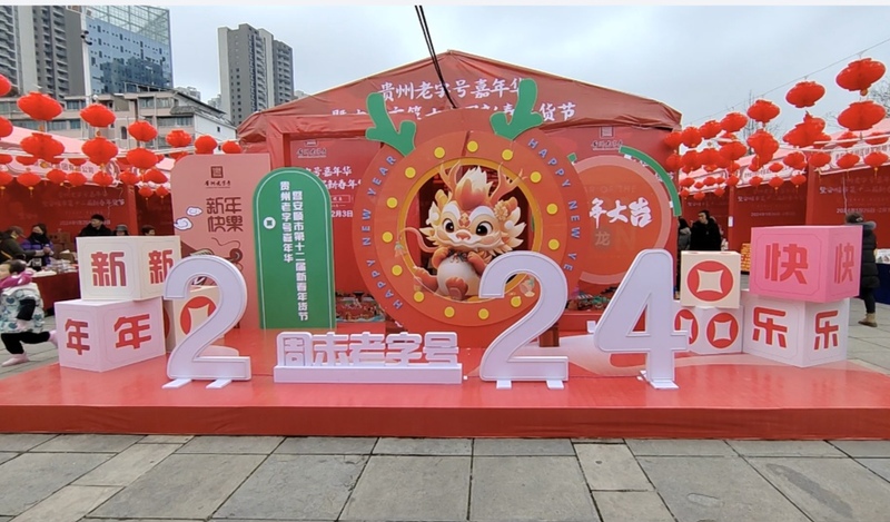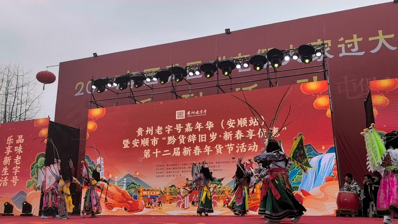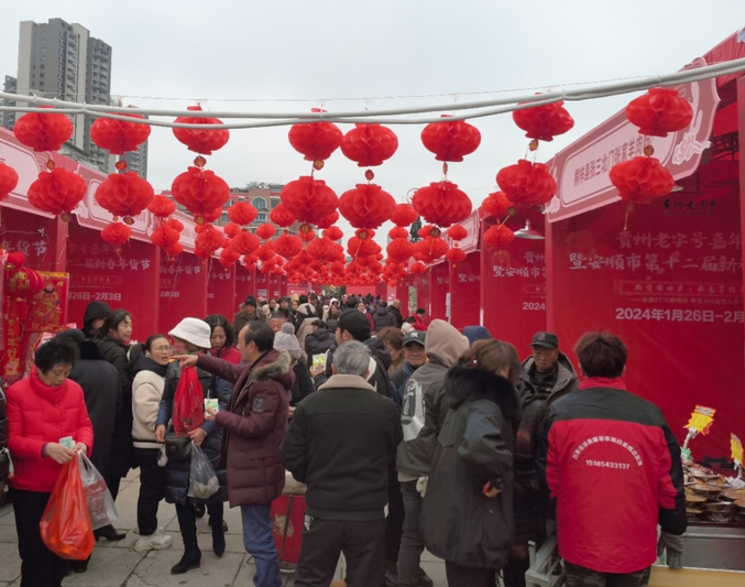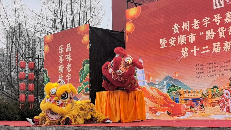 看舞狮、品非遗、写祝福、购年货······1月26日,贵州老字号嘉年华(安顺站)线下活动暨安顺市2024年“黔货辞旧岁·新春享优惠”第十二届新春年货节在若飞广场拉开序幕。