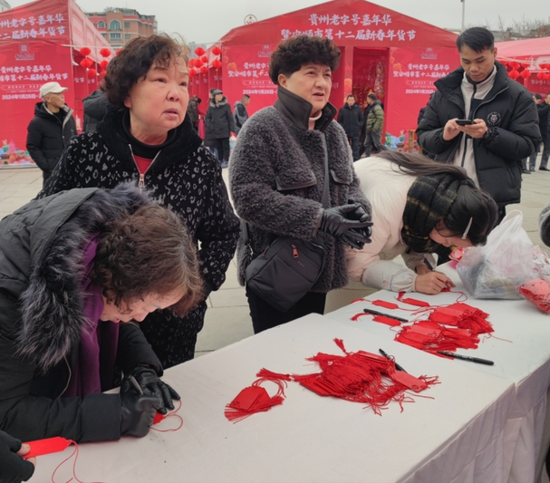市民吴霞在祈福牌上写下美好的新年祝福,挂在祈福墙上,表达对来年的期盼。她说:“每到过年老百姓都希望能从平凡烟火气中感受到充满幸福感的年味儿,今年若飞广场又举办了惠民年货节,不仅年货丰富,活动也很多,在这里感受到了满满的年味儿。”