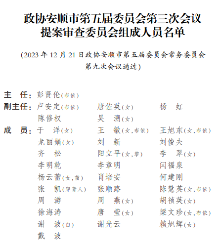 政协安顺市第五届委员会第三次会议提案审查委员会组成人员名单公布