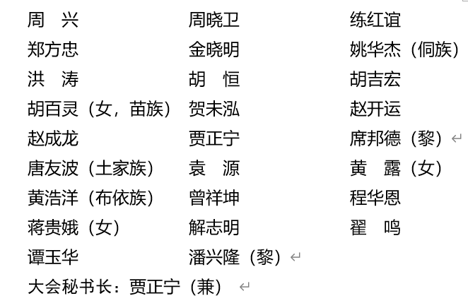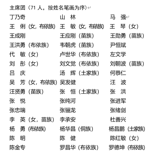 安顺市第五届人民代表大会第五次会议主席团和秘书长名单