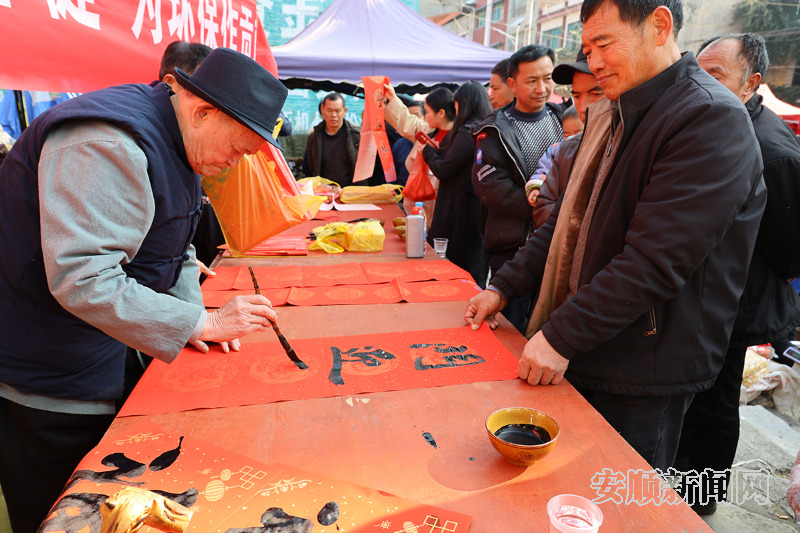 当日正是尅混村尅混场坝赶集日,紫云自治县总工会邀请该县书画协会和摄影协会成员现场为群众免费书写春联和拍摄全家福。一个个厚实饱满的“福”字、一副副气韵灵动的春联,饱含着人们新年的美好愿景、传递着民俗文化弥香的年味。一张张全家福,定格了家的团聚时刻,凝聚了血浓于水亲情,记录了全家老少的欢声笑语。