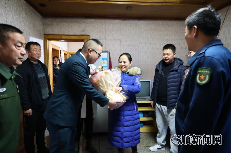 2月2日,安顺军分区政治委员李祥军前往平坝区开展春节走访慰问活动,市退役军人事务局局长齐紫丽陪同,对2户安顺籍在外服役官兵代表进行慰问。