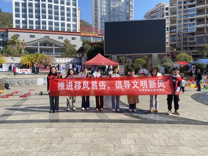 临近春节,为做好辖区青少年安全自护教育,切实增强大家的安全意识和应对突发事件的避险自救能力及弘扬中华民族传统美德,深入推动移风易俗宣传工作,以实际行动引领社会新风尚。2月1日,共青团紫云自治县委组织西部计划志愿者和“返家乡”大学生志愿者在紫云自治县青年友好街区亚鲁王广场开展“12355青春自护·平安春节”暨“推进移风易俗,倡导文明新风”活动。
