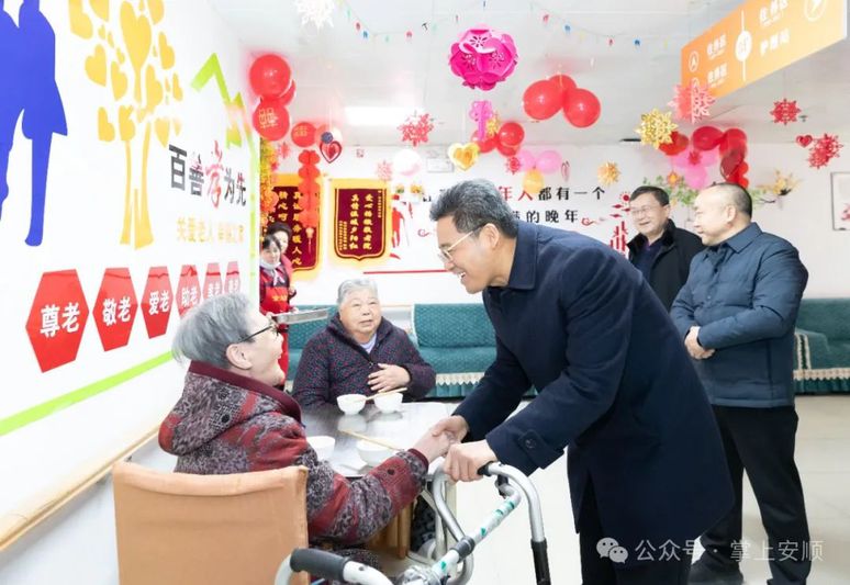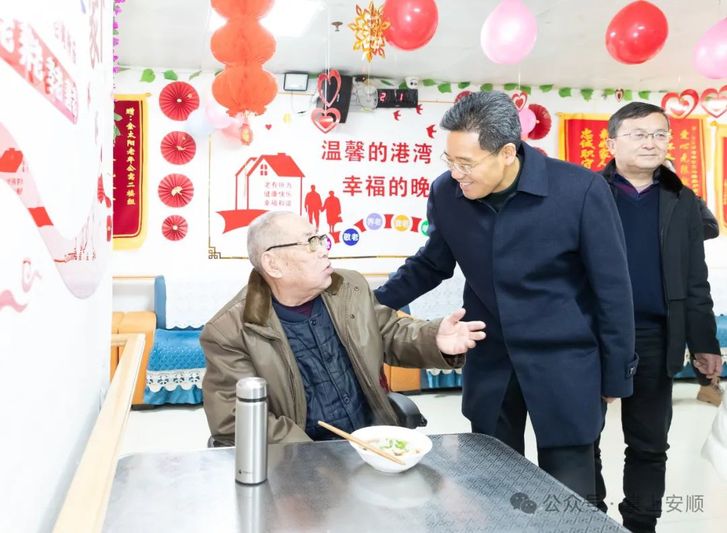 普定县金太阳老年公寓位于普定县白岩镇新城,为老人们提供集中养老服务,是荣获“全国敬老文明号”“省级医养结合服务示范单位”称号的医养结合机构。公寓内处处张灯结彩,老人们围坐一起吃汤圆、吃饺子,喜气洋洋迎新春。尹恒斌来到住宿区、活动区和医务室察看,与来自省内外的老人们亲切交流,关切询问他们的身体健康和生活情况,并向他们致于新春的祝福。他说,养护中心就是老人们温暖的家,要精心照料好老人们的生活,做好医疗、健康管理等服务,特别是春节期间多组织丰富多彩的敬老助老活动,营造浓浓的年味儿、幸福味儿,确保老人们度过一个安心、舒心、暖心的春节。