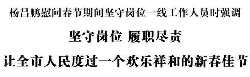 2月9日,农历除夕,市委书记杨昌鹏到主城区,亲切慰问坚守岗位一线工作人员,代表市委、市政府向大家表示衷心感谢,送上新春祝福。