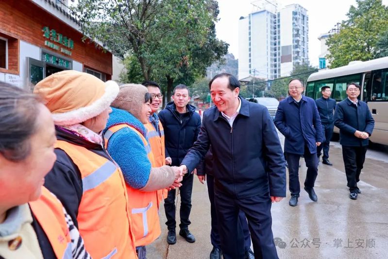 在西秀区运输路垃圾转运站,杨昌鹏看望慰问环卫工人,关切询问环卫工人的工作和生活情况。他说,环卫工人起早贪黑、风雨无阻,用劳动创造了城市的美丽洁净,希望大家充分发扬爱岗敬业、吃苦耐劳、甘于奉献的优良传统,持续发扬好“城市美容师”精神,在平凡的工作岗位上做出不平凡的成绩,为安顺创建全国文明城市作出积极贡献。各级各有关部门要关心关爱环卫工人,落实好各项保障措施,尊重珍惜他们的劳动成果,为他们解决工作上生活上的各种实际困难,在全社会营造支持环卫工作、尊重环卫工作者劳动、自觉维护城市环境的良好氛围。