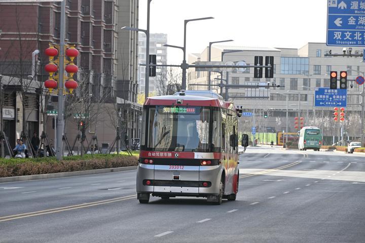 2024年3月29日,智能网联巴士在雄安新区容东片区街头行驶。该款巴士具有自动驾驶功能,搭载了多线激光雷达、毫米波雷达、高清摄像头等设备,能够对外部环境进行精确感知。依靠厘米级的高精度地图定位,车辆能够实现复杂天气及复杂城市路况下的安全行驶。