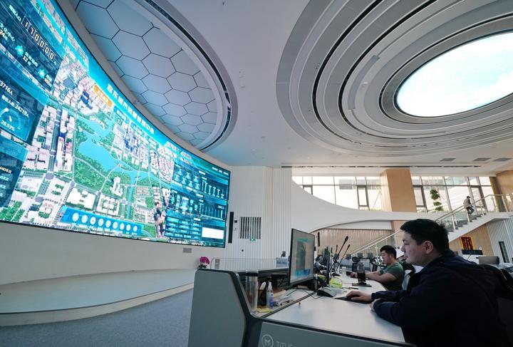 2024年3月29日,工作人员在雄安新区容东城市运营管理中心监管平台工作。