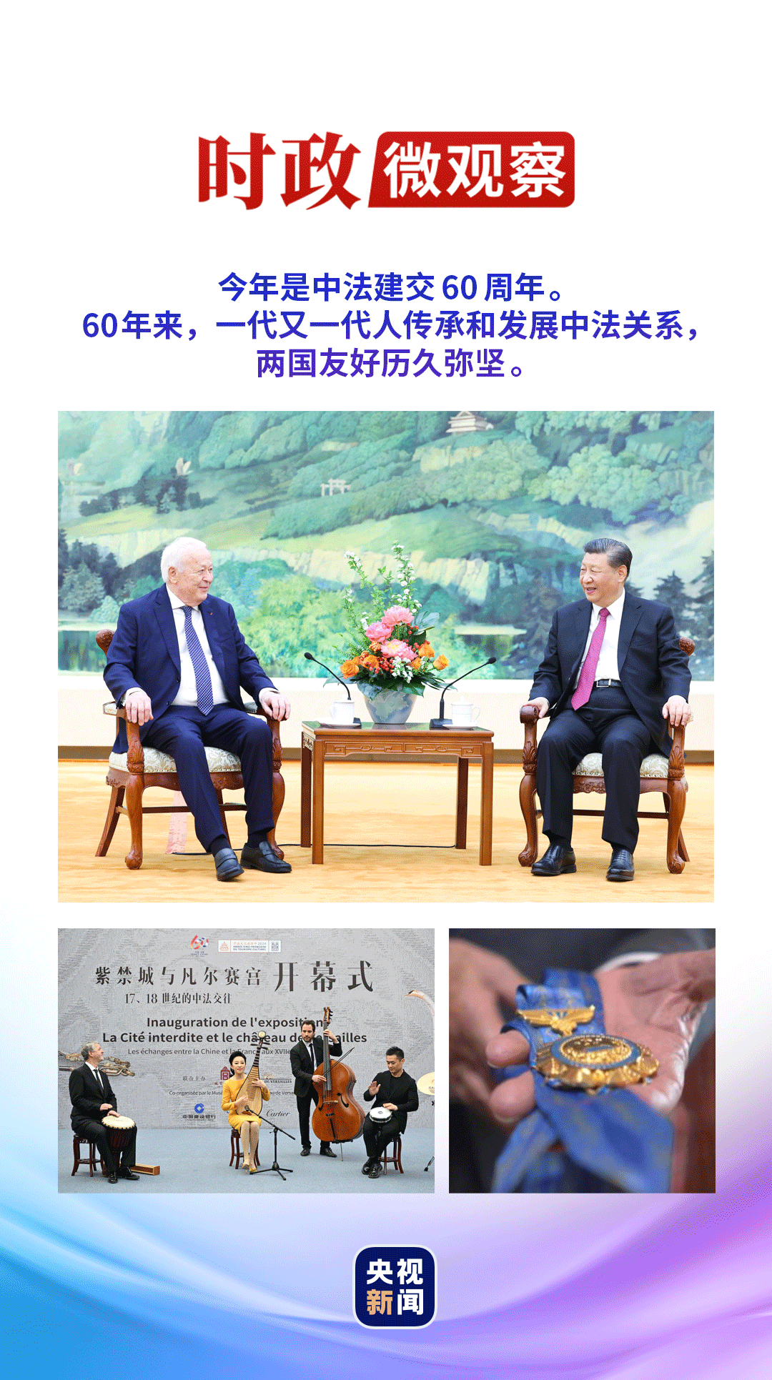 今年4月8日,再次会见中国人民这位老朋友,习近平主席抚今追昔:“60年来,一代又一代人传承和发展中法关系,两国友好历久弥坚。中方珍视中法友谊,愿同法方进一步加强高层交往,密切交流合作,推动中法关系迈上更高水平。”