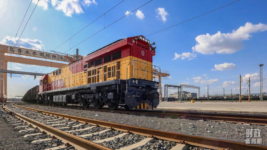 △2024年4月,乌鲁木齐国际陆港区中欧班列“天山号”畅行丝路。(图/视觉中国)