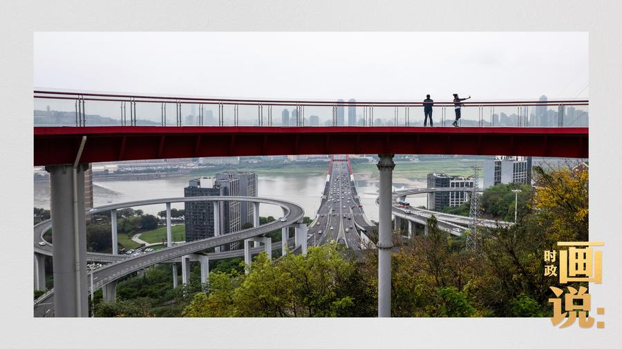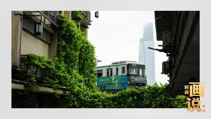 △一列轻轨列车驶出李子坝车站,穿行于楼宇之间。作为我国辖区面积和人口规模最大的城市,重庆智慧城市建设步伐正在不断提速。