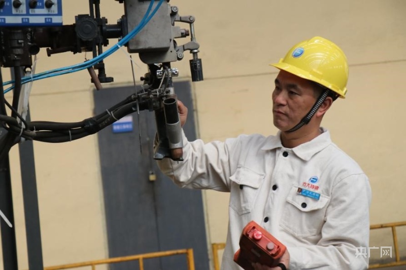 甘荣刚正在检查焊接设备(央广网记者 刘培俊 摄)