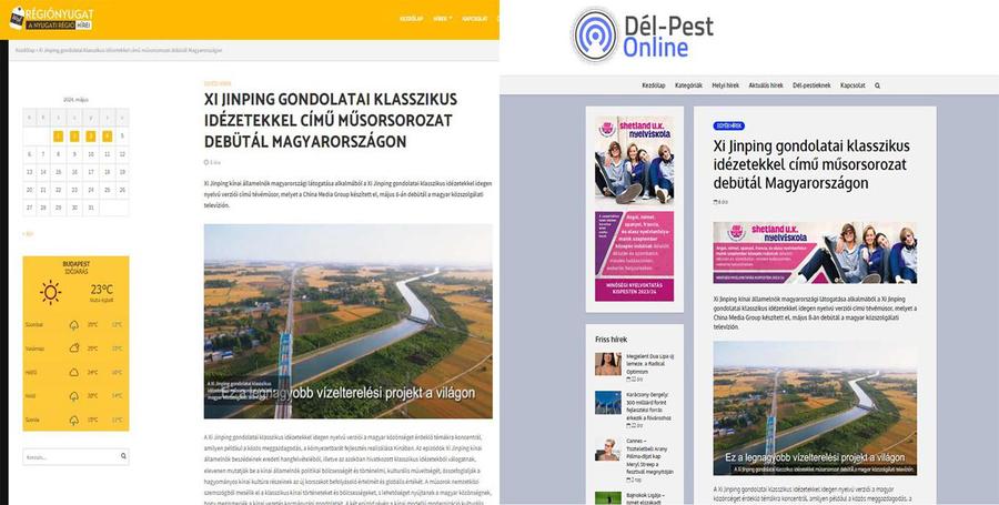 此外,当地时间5月4日,匈牙利东部生活网、匈牙利佩斯中心网、匈牙利西峰网、南佩斯在线网等对《平“语”近人——习近平喜欢的典故》(国际版)即将播出的消息进行了报道。匈牙利东部生活网主要以介绍亚洲以及中东欧地区内容为主,在匈牙利拥有广泛的受众群体。匈牙利佩斯中心网是布达佩斯地区最主要的商业媒体网站。