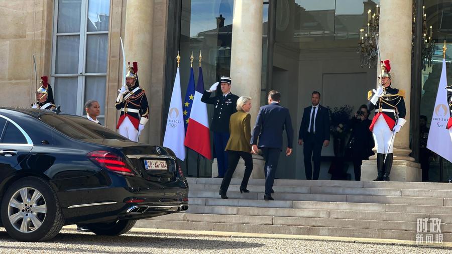 △欧盟委员会主席冯德莱恩抵达爱丽舍宫。(总台央视记者张洛嘉拍摄)
