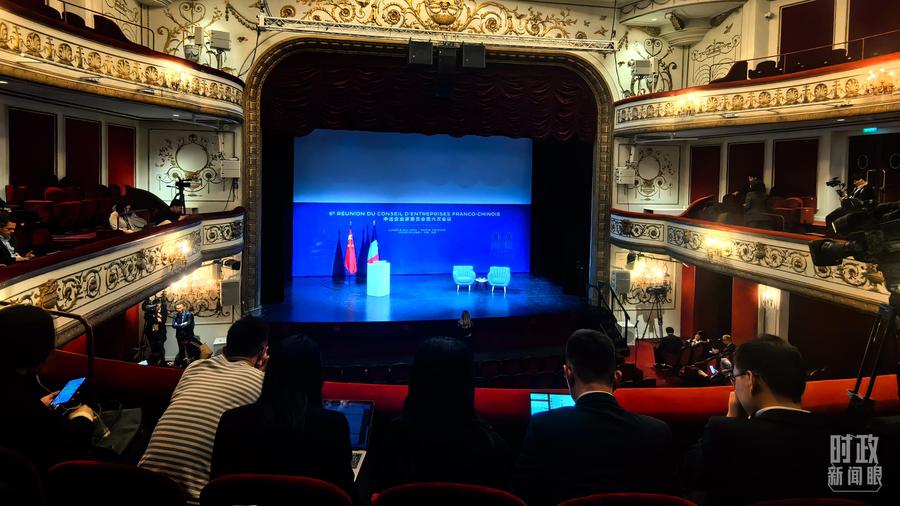 △中法企业家委员会第六次会议闭幕式在马里尼剧院举行,这是开始前的现场。(总台央视记者史伟拍摄)