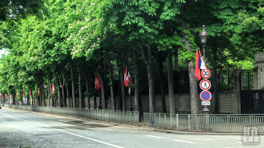 △巴黎道路两侧悬挂中法两国国旗。(总台央视记者鄂介甫拍摄)