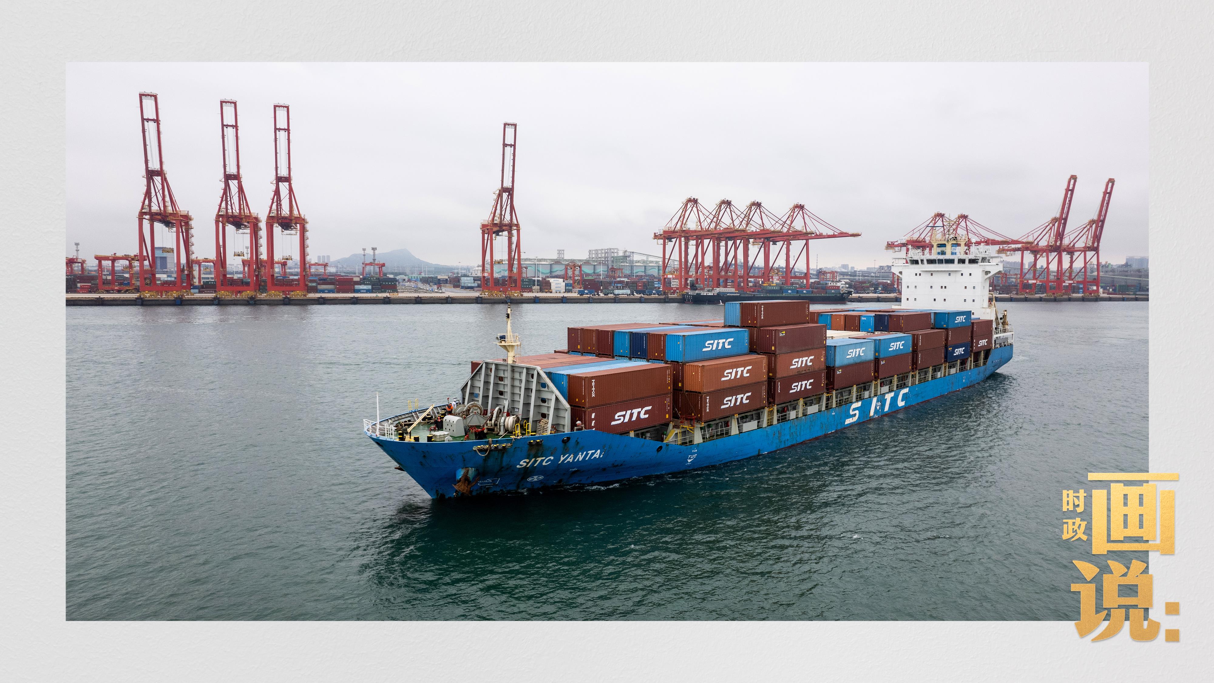 △一艘满载的货船正在驶离日照港石臼港区,奔向远海。