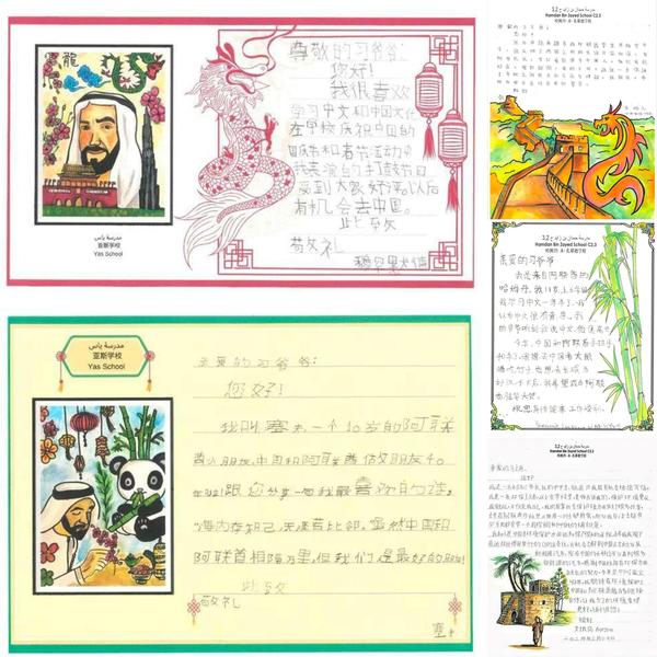 “我读了你们每个人的信,从字里行间、画里画外感受到了大家对中国文化的热爱,对两国友好的期盼。”近日,习近平主席在给他们的复信中说,“5年前,我同穆罕默德总统共同启动阿联酋中文教学‘百校项目’,如今看到‘学中文’在阿联酋已经成为一种新风尚,培养了一批像你们这样的中阿交流小使者,我很欣慰。”